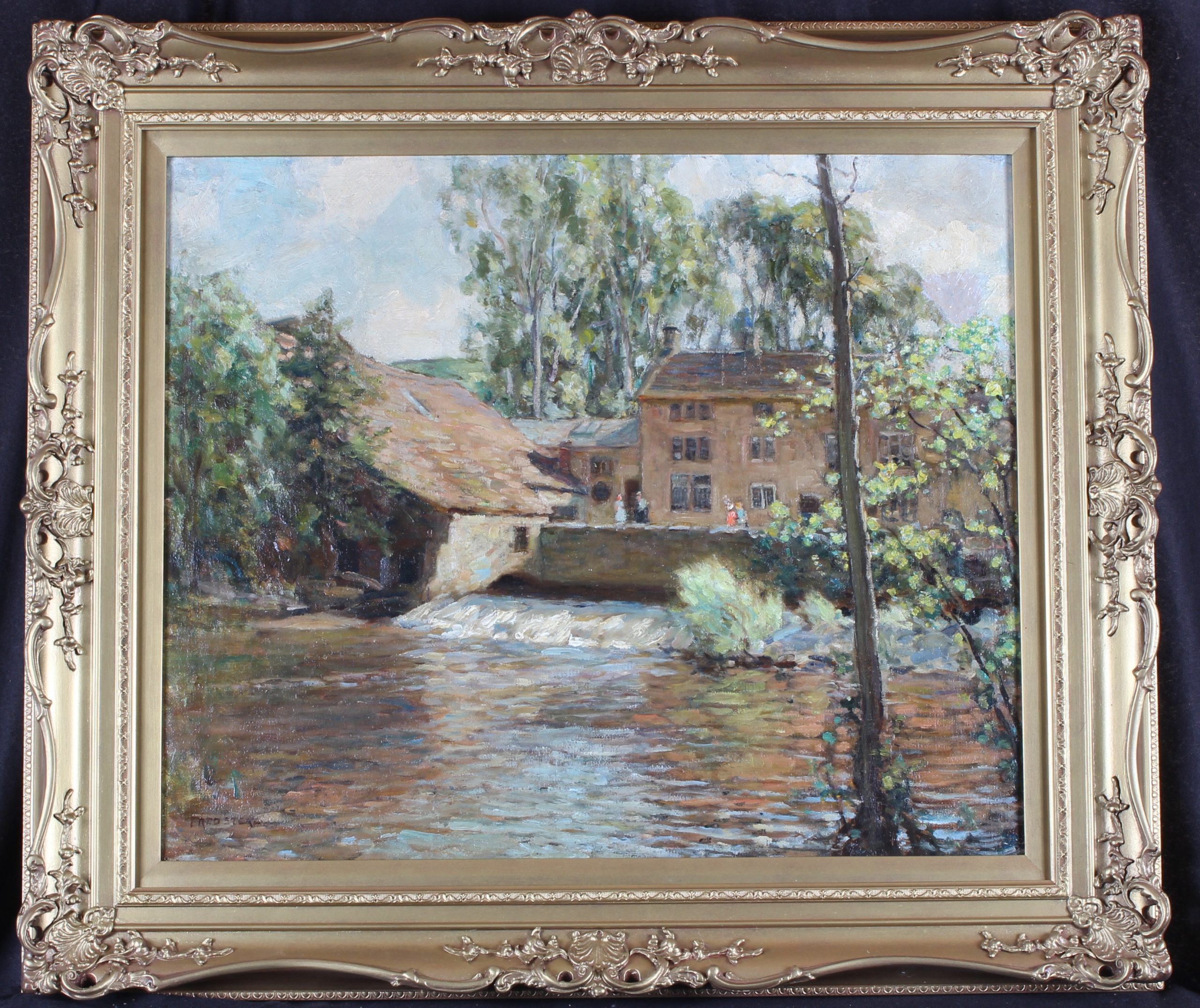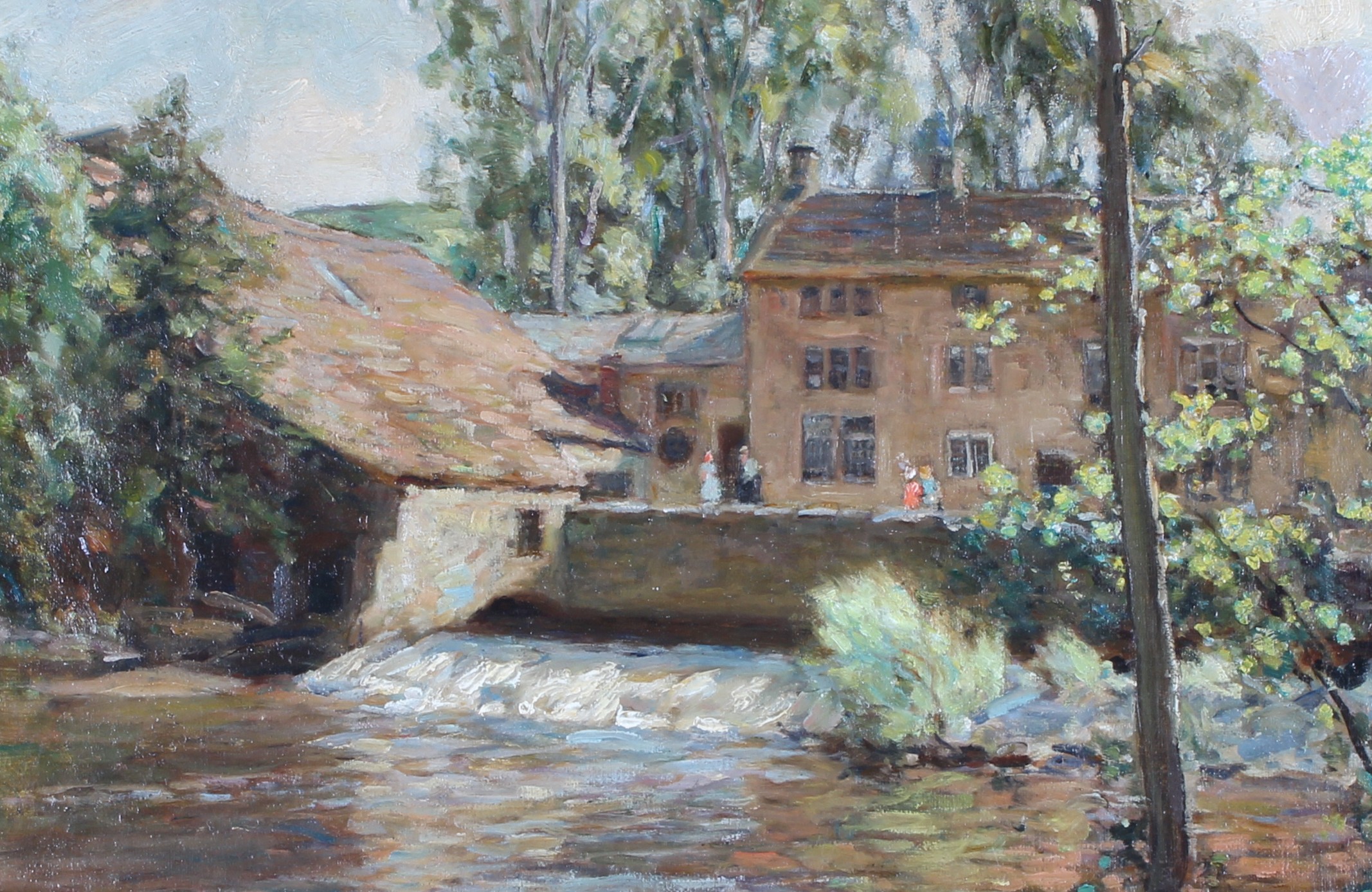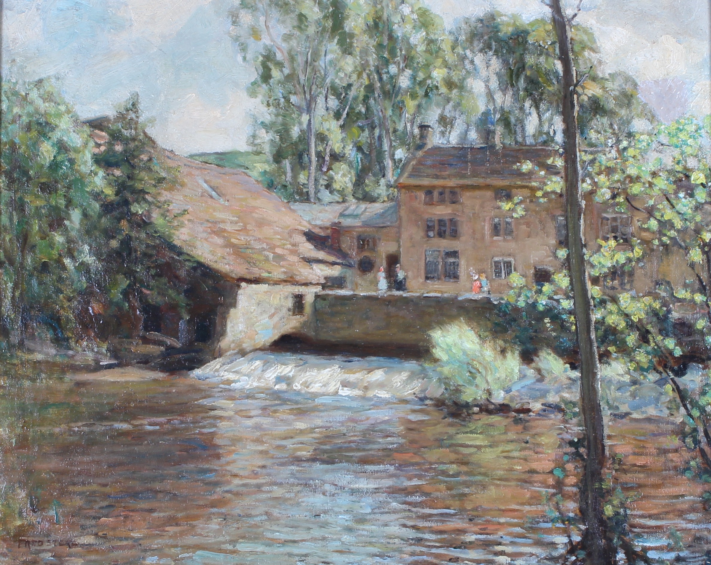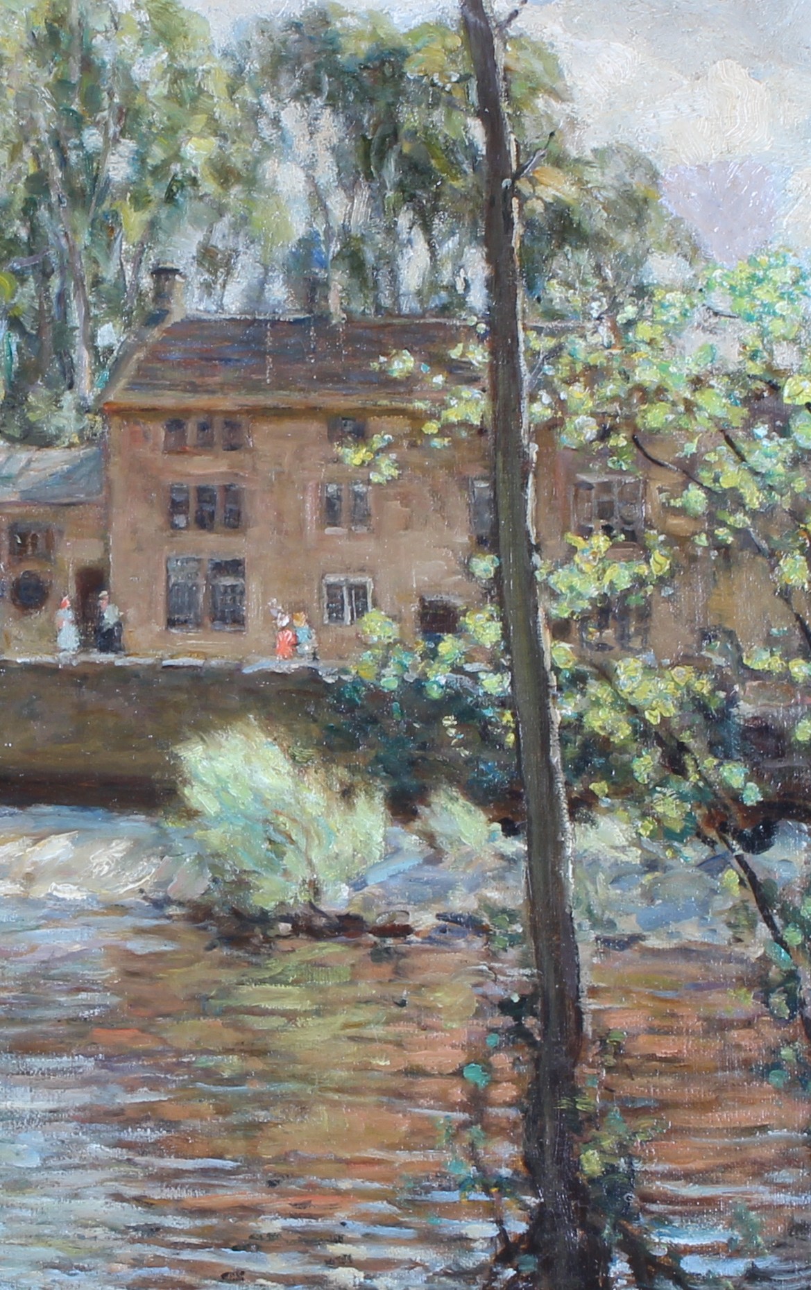 Artist: Fred Stead. (1863-1940). Title: ”Ripley Mill, Killinghall, near Harrogate, North Yorkshire”. Signed. Date circa 1910. Oil on canvas.