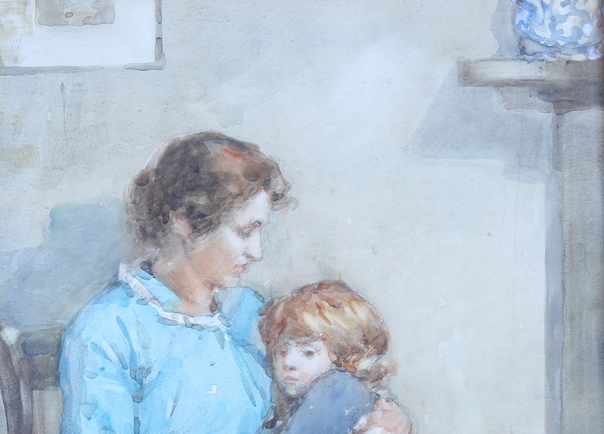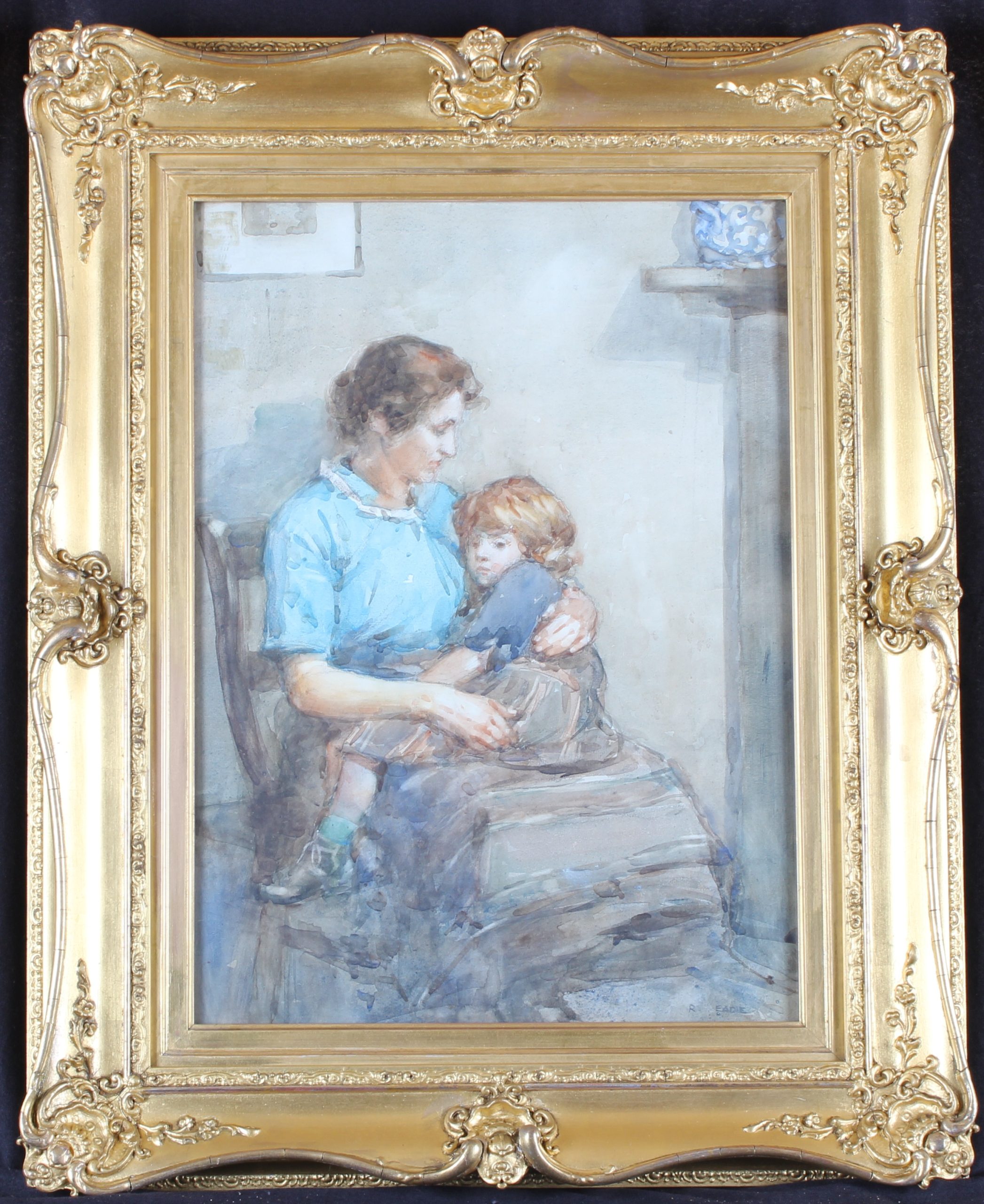 Title: ”A Tender Moment” A Mother and Daughter. Signed. Dated circa 1900. Watercolour. Size: 20””x 14 1/2””. Framed size: 28””x 14 1/2””. Now cleaned and it”s good original gilt frame cleaned.In very good ready to hang condition. Free UK delivery. For more info please contact us at: Tel: 01677 424830 Mob: 07885 175279