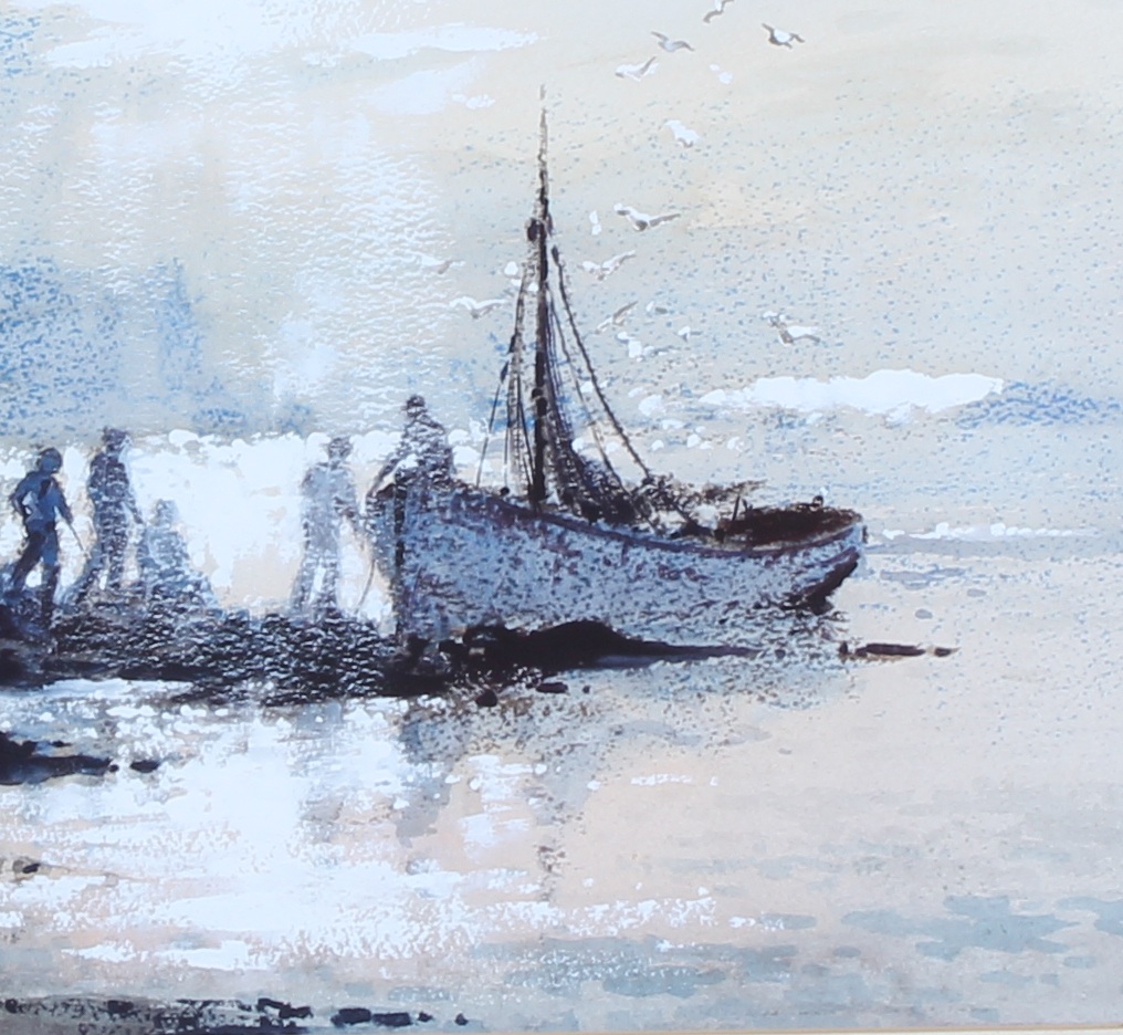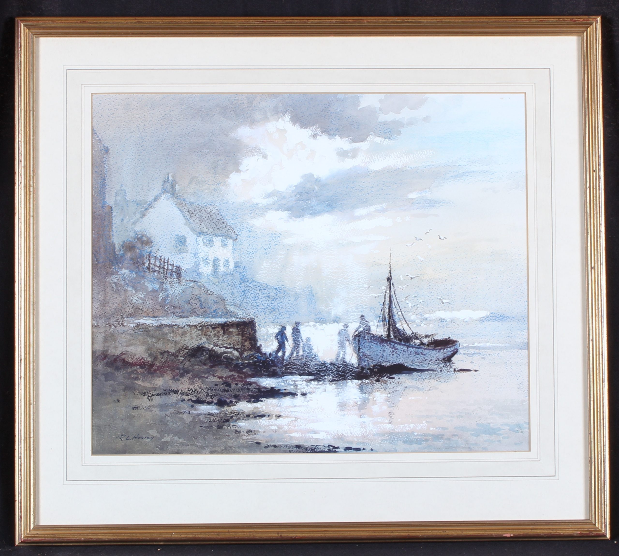 Title: ”Coble at Runswick Bay, with Lady Palmer’s Cottage”. North Yorkshire.